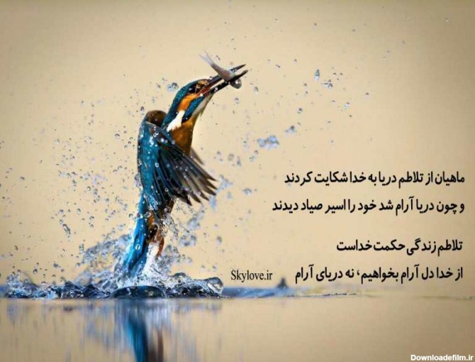 ماهیان از تلاطم دریا به خدا شکایت کردندو چون دریا آرام شد خود را اسیر صیاد دیدندتلاطم زندگی حکمت خداستاز خدا دل آرام بخواهیم، نه دریای آرام