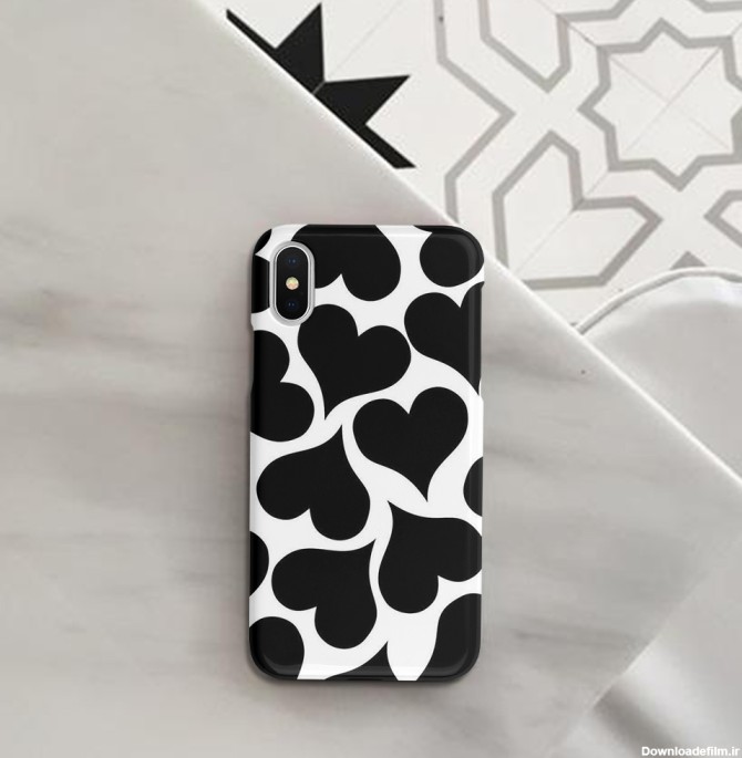قاب گوشی قلبی سیاه و سفید قاب موبایل رمانتیک با قلب های مشکی و زمینه سفید