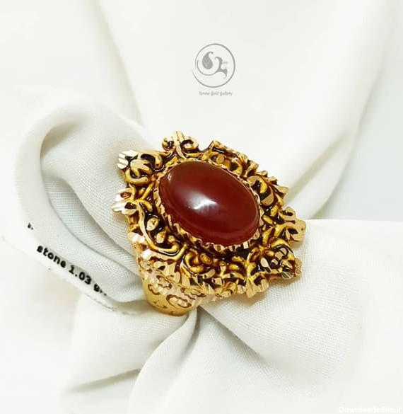خرید انگشتر زنانه طلا با سنگ عقیق یمنی طرح پرنیان از گالری جواهرات ...