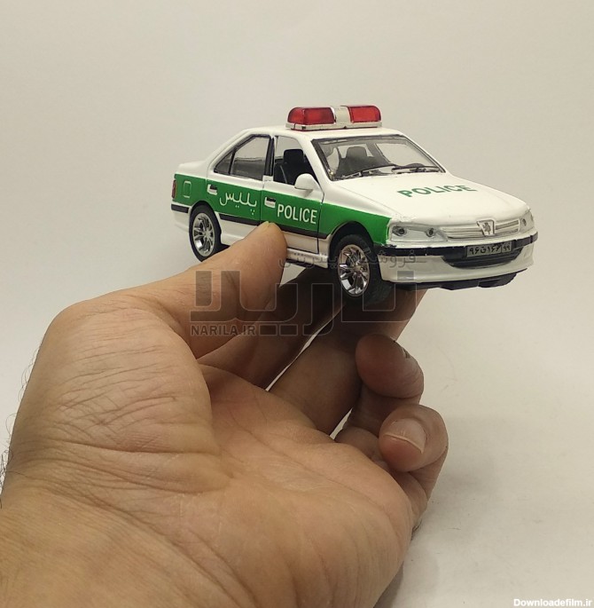 ماکت پژو پارس طرح ماشین پلیس نیروی انتظامی با قابلیت روشن شدن چراغ های جلو ، 2 درب بازشو و مکانیزم عقبکش در فروشگاه ناریلا