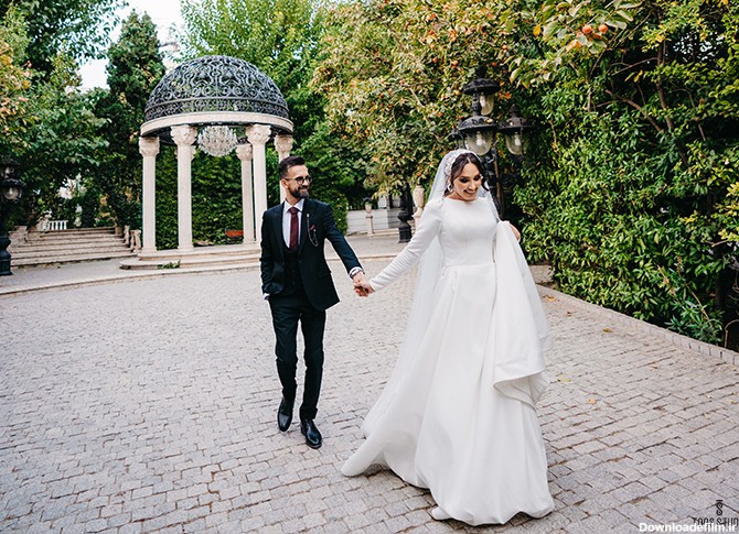 ۵۰ ژست جدید عکس عروس و داماد با مدلهای ایرانی در فضاهای باز و عمارت