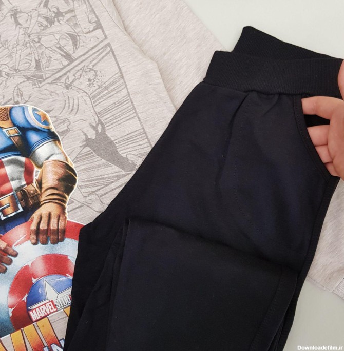 خرید بلوز و شلوار راحتی پسرانه طرح کاپیتان آمریکا با جنس نخ پنبه و قیمت مناسب.