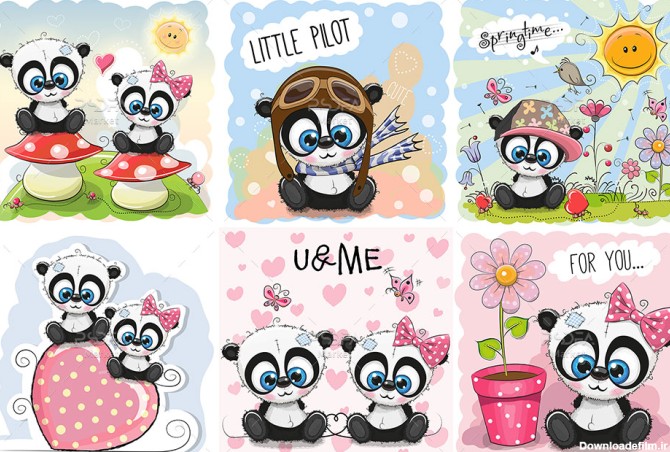 دانلود 8 طرح پاندا کارتونی و کودکانه بامزه فانتزی - وکتور طرح پاندا کارتونی و کودکانه بامزه فانتزی مجموعهای زیبا از 8 طرح وکتور خرس پاندا فانتزی است که مناسب