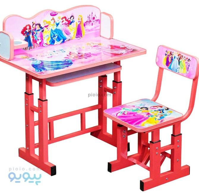میز تحریر دخترانه طرح پرنسس دارای پایه های آهنی با رنگ ضدخش با امکان تظیم ارتفاع 15 سانتی از چوب نئوپان ملامینه ضد خش 2تا12سال،