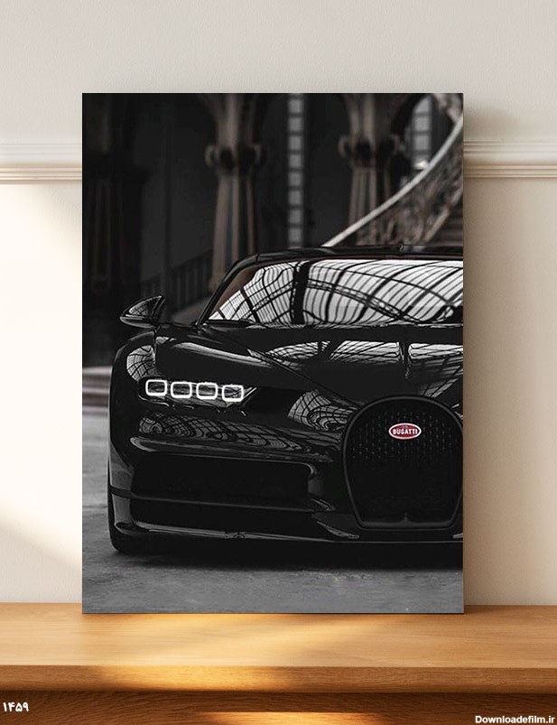 خرید تابلو عکس ماشین بوگاتی مشکی براق ، تصویری فوق العاده زیبا از یک ماشین بوگاتی مناسب برای انواع دکوراسیون ها تصاویر تابلو ماشین لوکس
