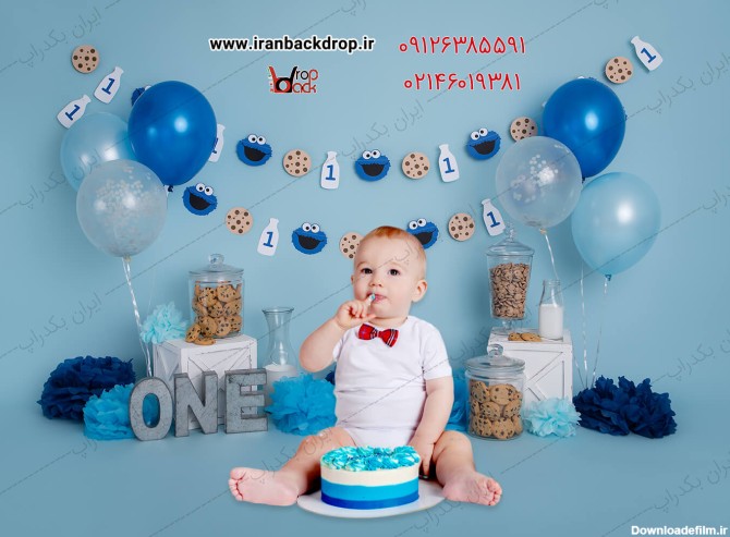 بک دراپ عکاسی تولد یک سالگی پسرانه تم کوکی کد IBD