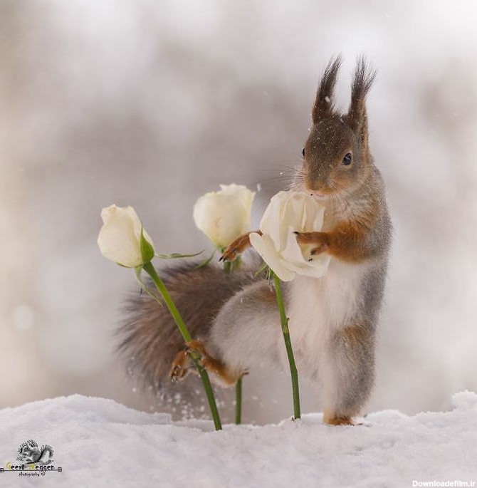 تصاویری دیدنی از بازیگوشی سنجاب و آدم برفی را ببینید./ عکس: گرت وگن