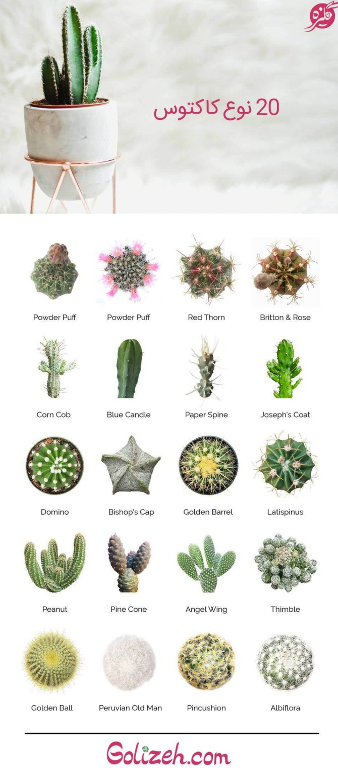 اسامی انواع کاکتوس با عکس، معرفی 130 نوع کاکتوس با مشخصات مانند گل، میوه و روش نگهداری ،به راحتی از روی عکس نام کاکتوس و روش نگهداری را پیدا کنید.
