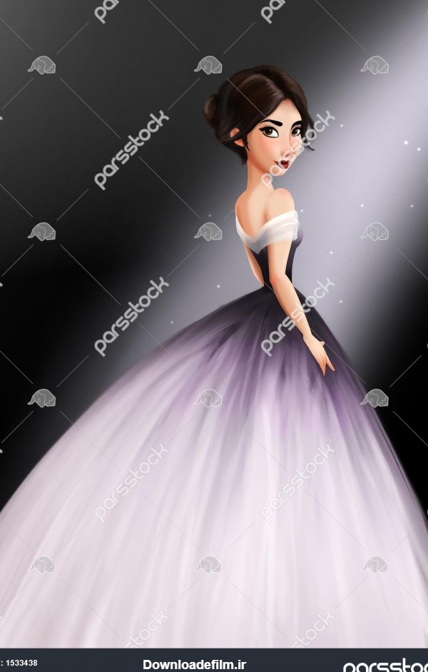 دختر کارتونی زیبا لباس بنفش سفید مجلسی نقاشی دیجیتال - بزرگترین مرجع خرید و فروش عکس و طرح لایه باز با کیفیت بالا در ایران در پارس استاک.