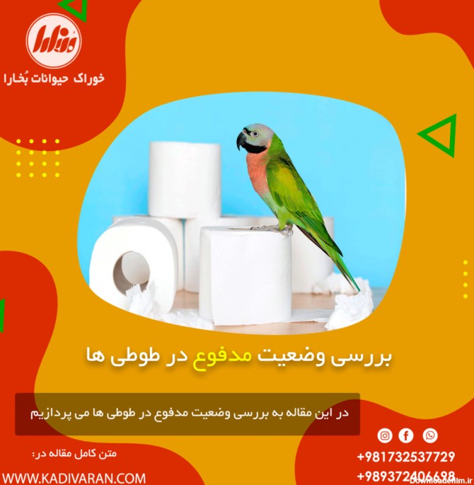 مدفوع طبیعی و غیر طبیعی در طوطی ها- اولین نشانه بیماری در پرندگان مدفوع آنهاست و شما اولین کسی هستید که با شناخت آن می توانید علائم بیماری