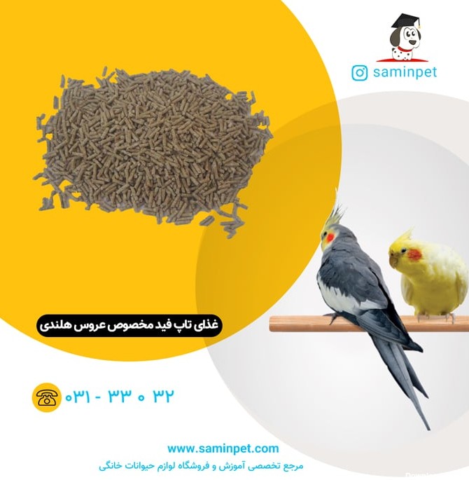غذای پلت عروس هلندی تاپ فید غذای ایرانی با کیفیت است که با توجه به نیازهای این پرنده بالانس و تولید شده و به تنهایی تامین کننده تمام نیازهای عروس هلندی است