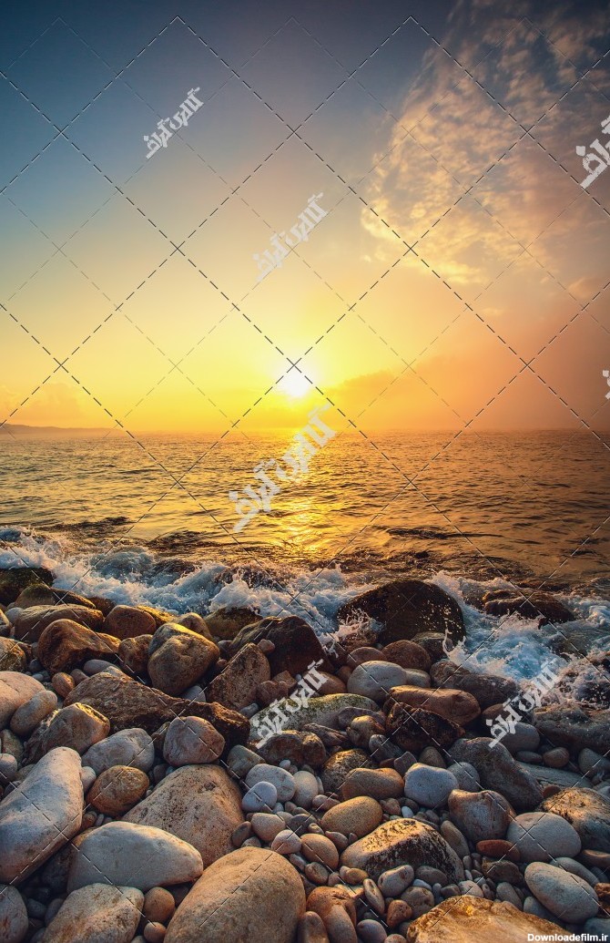 عکس سنگ و ساحل دریاسنگ های ساحل ، غروب دریا ، دریا ، ساحل دریا