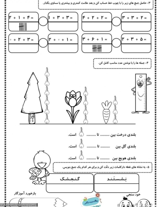دانلود نمونه سوال - آزمونک رایگان ریاضی اول دبستان