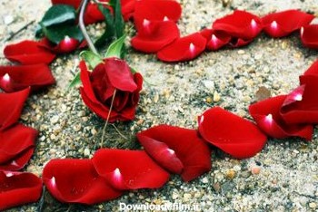 عکس عاشقانه قلب از گل رز ، تصویر عاشقانه از گل رز خوشگل به شکل قلب ساخته شده با گلبرگ های گل رز سرخ، دانلود عکسهای زیبای عاشقانه و رمانتیک از طراحی شکل قلب قرمز توسط گلبرگ های پرپر شده گل رز زیبای قرمز و تک شاخه گل رز میان قلب روی زمین
