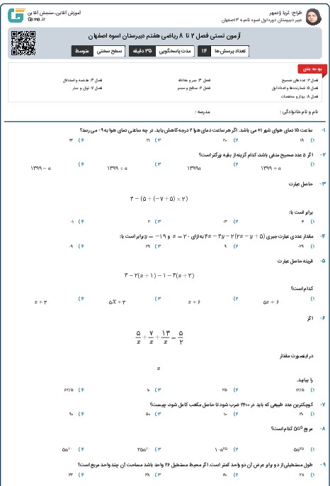جواب ریاضی هفتم صفحه ۳۰ ✔️ حل سوال 1 و 2 و 3 و 4 و 5 و 6 و 7 تمرین صفحه 30 ریاضی هفتم در سایت نوین گام