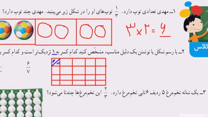جواب تمرین صفحه ۴۱ ریاضی چهارم و راه حل سوالات ۱ تا ۳ از فصل دوم ضرب عدد در کسر ☑️ ، پاسخ پرسش های تمرین صفحه 41 به صورت کامل و صحیح.