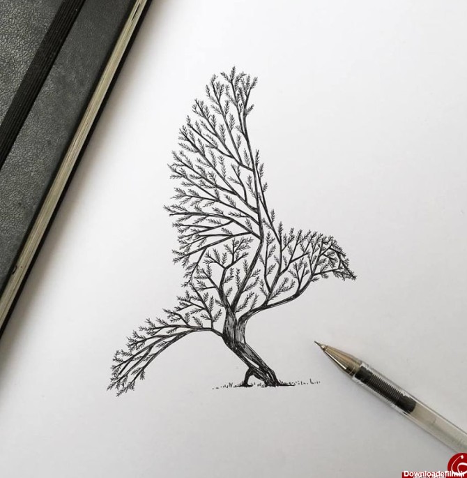 یک هنرمند با استفاده از خودکار مشکی طرح های شگفت انگیزی از طبیعت و حیوانات خلق میکند.