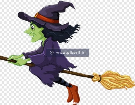 فایل ترانسپرنت و دوربری شده شخصیت کارتونی جادوگر سوار بر جارو . ارائه شده با پسوند png
