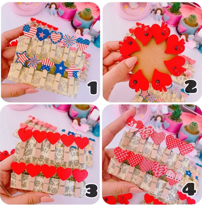 گیره چوبی عکس طرح قلب همراه با نخ کنفیطول نخ کنفی: 143 سانتی مترتعداد گیره چوبی: 10 عددتوجه: طرح 2 دارای 8 گیره چوبی و بدون نخ کنفی می باشد.