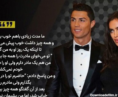 جزئیات جدایی کریستیانو رونالدو از نامزد سابقش ایرینا شایک و دلیل جدایی کریستیانو رونالدو از مدل روسی و عکس های کریستیانو رونالدو و نامزدش را در نیک صالحی بخوانید