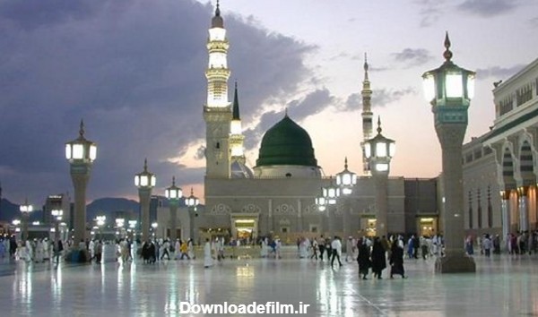 پوستر حرم حضرت محمد (ص) ، پوستر بزرگ و با کیفیت از حرم حضرت محمد (ص) با گنبد سبز حرم و گلدسته ها، زیباترین پوستر های مذهبی و اسلامی