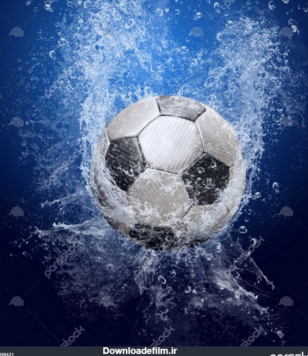 قطرات آب در اطراف توپ فوتبال در پس زمینه آبی رنگ - بزرگترین مرجع خرید و فروش عکس و طرح لایه باز با کیفیت بالا در ایران در پارس استاک.