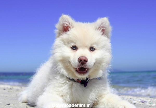 سگ سفید پشمالو ، عکس جالب از سگ سفید پشمالو بامزه کنار ساحل دریا، دانلود تصاویر منتخب از توله سگ های ناز و خوشگل پشمالو و مامانی روی شن های ساحل دریا، تصویر باکیفیت از سگهای خوشگل دخترونه با پشم های پر پشت سفید رنگ