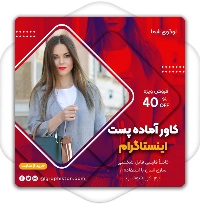 کاور پست اینستاگرام فروشگاهی لایه باز قابل ویرایش در فتوشاپ است.فرمت آن PSD است و تمام المان ها و فونت ها و رنگ آن را میتوانید تغییر دهید.
