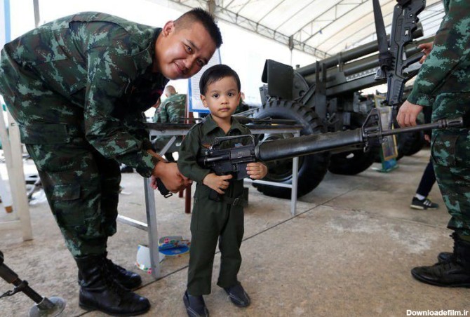 رکنا: ارتش تایلند در «روز کودک» به کودکان علاقهمند اجازه داد با تسلیحات ارتش بازی کنند. کودکان در پادگانی در بانکوک، پایتخت تایلند با شوقوذوق بسیاری با مسلسلها بازی و حضور در وسایل نقلیۀ زرهی، تانکها و بالگردها را تجربه کردند.