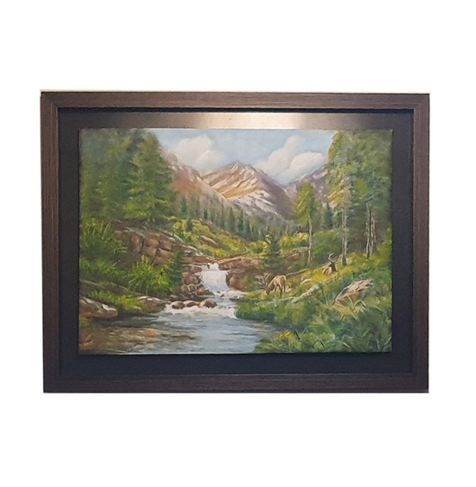 تصویر با کیفیت منظره زیبای جنگل به همراه طاوس و نقاشی طبیعت عکس با کیفیت منظره.این تصویر قابل چاپ در ابعاد بزرگ می باشد. از این عکس با کیفیت می