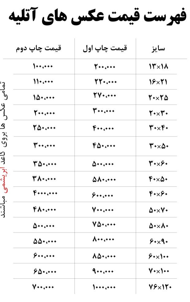 قیمت چاپ عکس ایران فیلم ۱۴۰۲