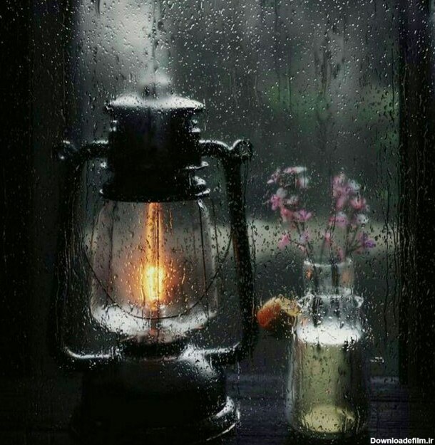 عکس گل کنار پنجره بارانی