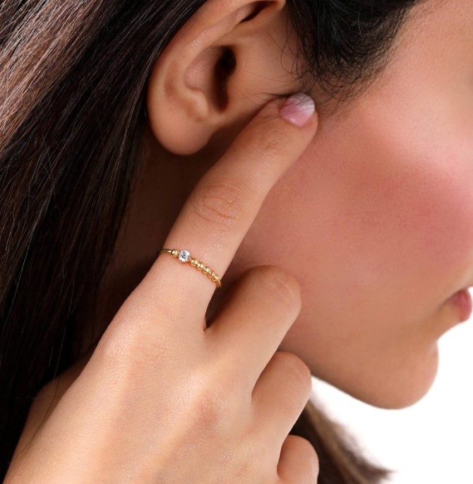 انگشتر بسیار ظریفی که با تک نگین درخشانی زینت داده شده از سری انگشترهای طلا ظریف که برای اسافاده روزمره مناسب است مناسب دختران مشکل پسند