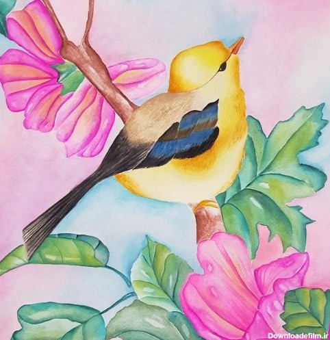خرید و قیمت نقاشی آبرنگ گل و پرنده از غرفه Zaesi
