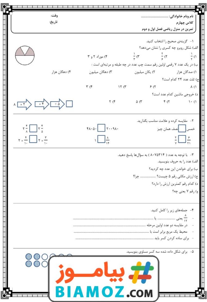 جواب فعالیت صفحه ۲۶ ریاضی چهارم دبستان ⭐ و حل سوال های 1 - 2 - 3 - 4 و 5 فعالیت صفحه 26 کتاب ریاضی پایه چهارم دبستان با توضیح کامل پرسش ها.