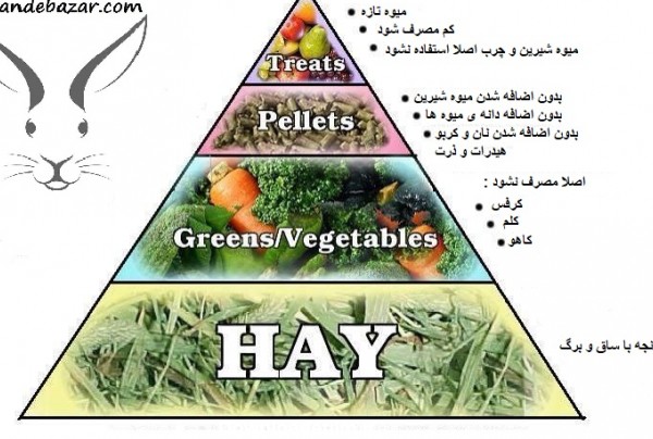 اصول تغذیه صحیح خرگوش، بایدها و نباید های تغذیه خرگوش، غذای خشک(یونجه) و پلت و سبزیجات تازه و میوه عمده مواد غذایی مورد نیاز خرگوش