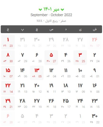 تقویم ۱۴۰۱ ایران با مناسبتها و تعطیلات رسمی کشور، تقویم آنلاین و کامل سال ۱۴۰۱ هجری شمسی (خورشیدی)، تقویم 1401