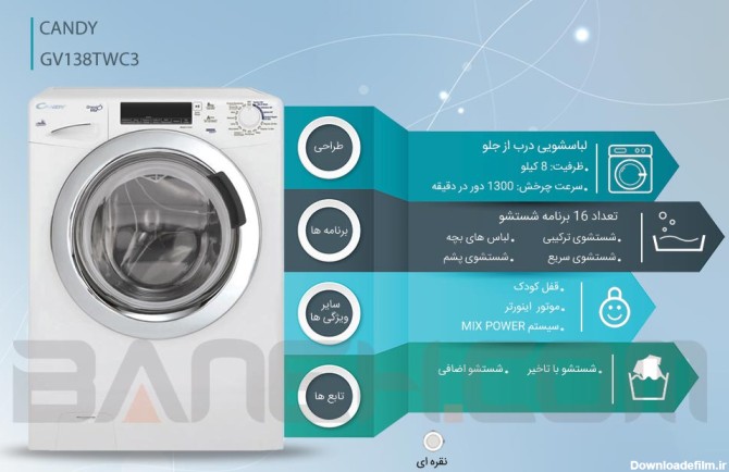 Candy GC 1272D1 k Washing Machine 7 Kg ماشین لباس شویی Candy GC1272D1/k با ظرفیت 7 کیلوگرم با 17 برنامه ی شست و شو و موتوری با قابلیت 1200 دور چرخش در دقیقه، تحت لیسانس کندی ایتالیا، محصول شرکت پاکشوما جهت مشاهده سایر مدل های ماشین لباسشویی 7 کیلویی کندی کلیک کنید.