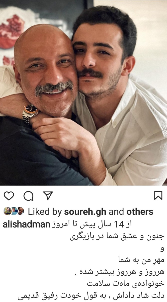 علی شادمان با انتشار پستی در صفحه ی شخصی اش از امیر جعفری نوشت.