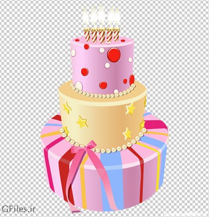 دانلود فایل ترانسپرنت و دوربری شده کیک تولد سه طبقه شمع دار کارتونی با پسوند png