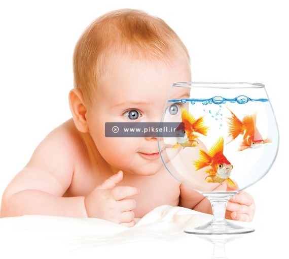 دانلود عکس با کیفیت از کودک در حال تماشای تنگ ماهی قرمز عید با پسوند jpg