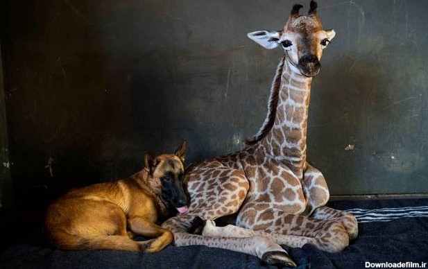 دوستی و مراقبت یک سگ از یک بچه زرافه ۹ روزه در آفریقای جنوبی