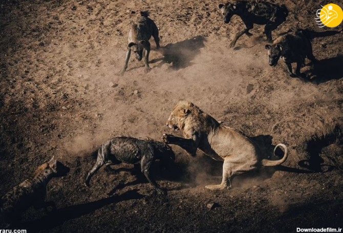 یک کفتار بدشانس به اندازه کافی سریع نبود و توسط شیر نر دستگیر شد! شیر و کفتار در خاک غلتیدند و گرد و خاک فضا را در بر گرفت. آروارههای قدرتمند شیر دور سر کفتار قرار گرفت. وضعیت برای کفتار وخیم به نظر میرسید تا اینکه اتفاق قابل توجهی رخ داد./فرارو