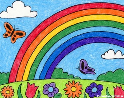 آموزش آسان نقاشی و رنگ آمیزی قشنگ و فانتزی کودکانه ابر و رنگین کمان رنگارنگ