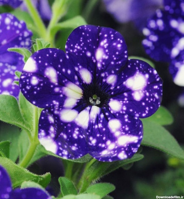 عکس : گل اطلسی آسمان شب نام گونه ای زیبا و شگفت انگیز از گل اطلسی می باشد که با گلبرگ های بنفش و نقطه های سفید مانند کهکشانی پر از ستاره می باشد.