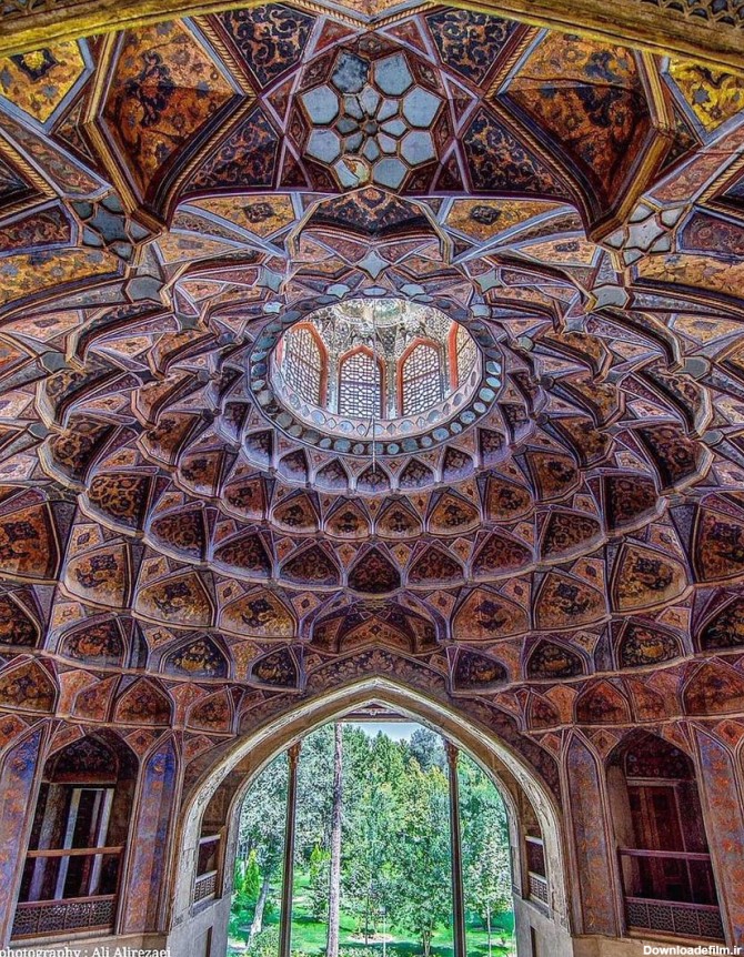 نمایی از داخل کاخ زیبای هشت بهشت در اصفهان