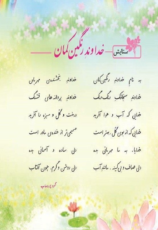 شعر «خداوند رنگینکمان» از محمود پوروهاب، در کتاب فارسی سوم دبستان.