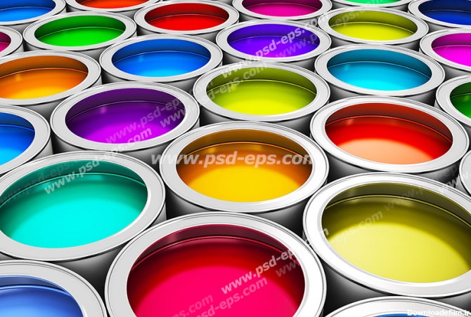 عکس با کیفیت تبلیغاتی سطل های رنگ با رنگ های شاد و زیبا در کنار یکدیگر