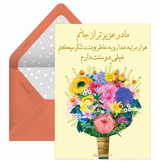 کارت پستال مادر عزیزتر از جانم هزار مرتبه خدا رو به خاطر بودنت شکر میکنم خیلی دوستت دارم, مادر - پویا, کارت پستال تشکر از مادر - کارت پستال دیجیتال