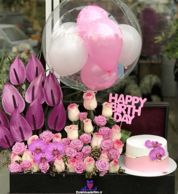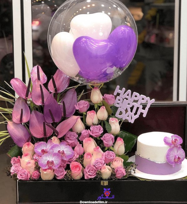خرید آنلاین باکس گل شایلی، گل و بادکنک با تم های رنگی مناسب برای تولد، ارسال رایگان گل تولد به آدرس شما و سورپرایز کردن عزیزانتان با انگور